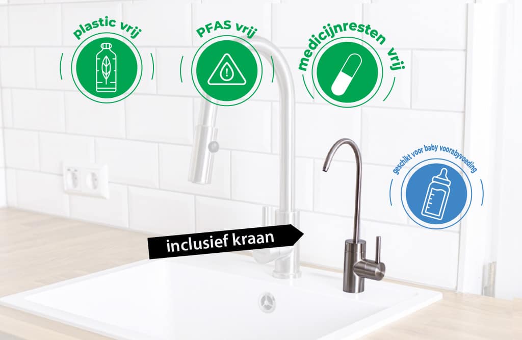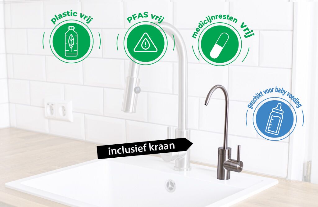 Drinkwater: het best mogelijke drinkwater, vrij van onzuiverheden zoals PFAS, microplastics, medicijnresten, etc.